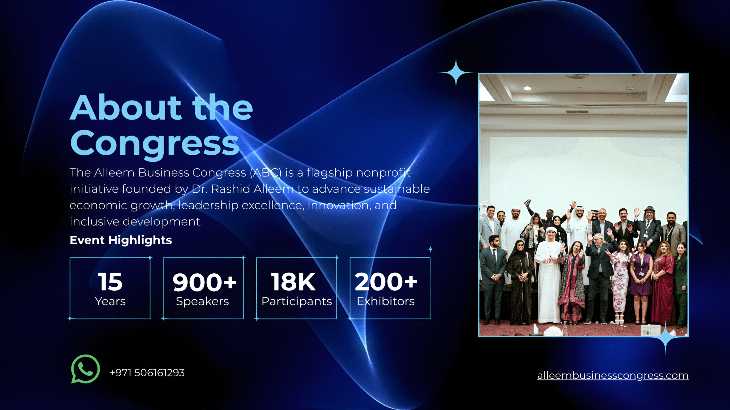 We invite forward-thinking companies and organizations to join us in supporting the Alleem Business Congress—a nonprofit initiative dedicated to driving sustainable economic growth, fostering leadership excellence, and empowering communities through impactful dialogue and collaboration. By partnering with us, you demonstrate a commitment not only to corporate social responsibility but to building a future where innovation, ethical business, and inclusive development thrive. Your support fuels meaningful change, opens doors to powerful networks, and positions your organization as a catalyst for positive global transformation.